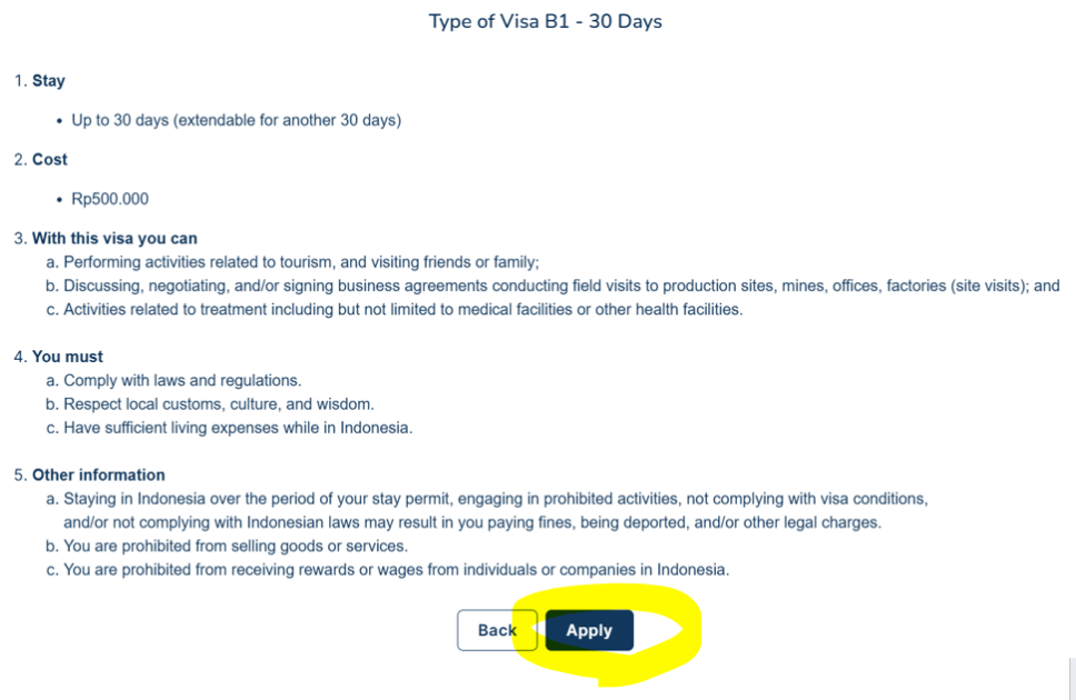 ▶ 3) Visaの内容を最後まで確認してください。そのあとApplyをクリック
