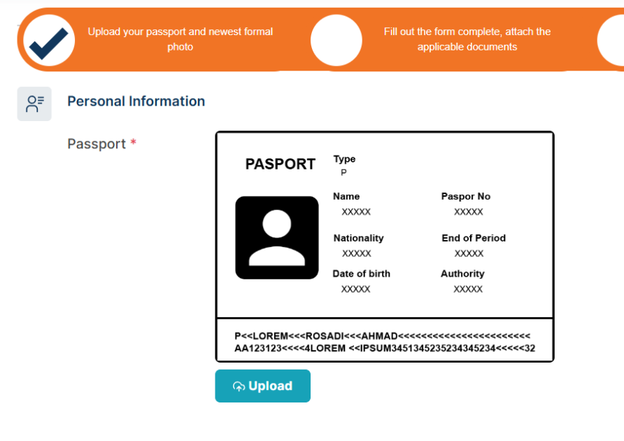 (1)VISAタイプ情報、(2)個人情報、(3)パスポート情報は、アップロードしたパスポート画像データから読み取られて入力されていると思います。