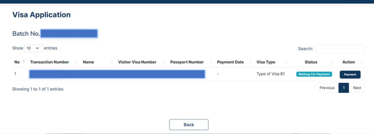 登録メールアドレスにIndonesia Immigration One Platform System – EVISAのタイトルでVISA申請が受理されたことの連絡と申請・支払いを続ける画面へのリンクが送られてきます。(そちらのリンクから、申請画面に入れます)