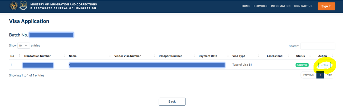 リンク先は下記の画面となり、Action の e-VISA をクリックすると eVOA が表示され、ダウンロードできます。