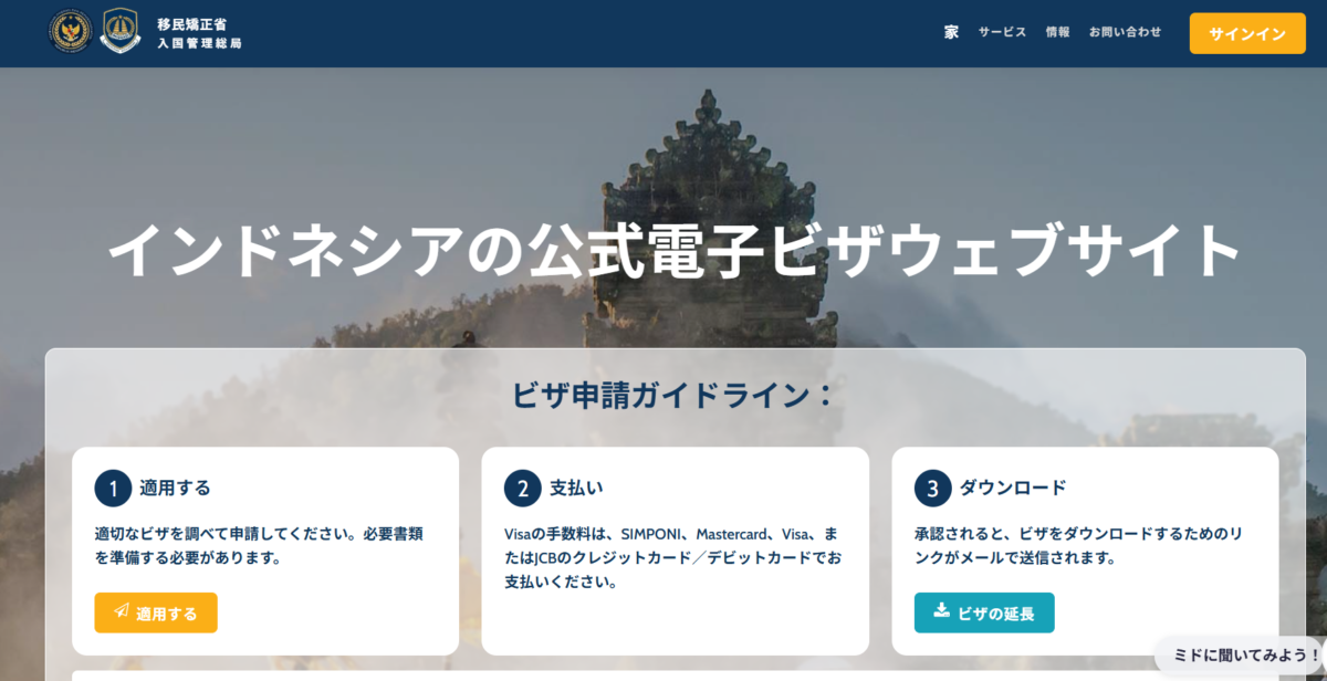 観光目的であれば、2.到着時訪問ビザ(インデックスB)で皆さん申請されると思いますね。ててぺろもこれの電子版eVOAでいきます。この取得方法を以下で説明していきます。 All Indonesia の方は次回ということで(https://allindonesia.imigrasi.go.id/)。